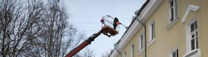 На прошлой неделе работники ЖЭУ продолжали чистить кровли от снега...