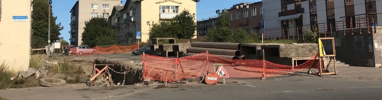 Ремонты на ул. М. Горького продолжаются уже не первый год, что свидетельствует о крайней изношенности главного магистрального трубопровода, питающего все дома города. Эти работы надо произвести не откладывая дело в долгий ящик, пока стоит теплая погода.