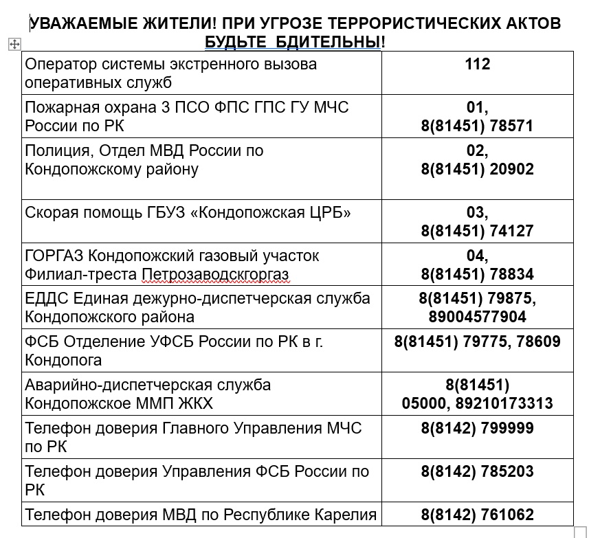 В целях профилактики правонарушений, предотвращения совершения террористических актов и эффективного реагирования на возможные террористические угрозы предлагаем ознакомиться с рекомендациями и сохранить для себя список телефонов экстренных служб.
