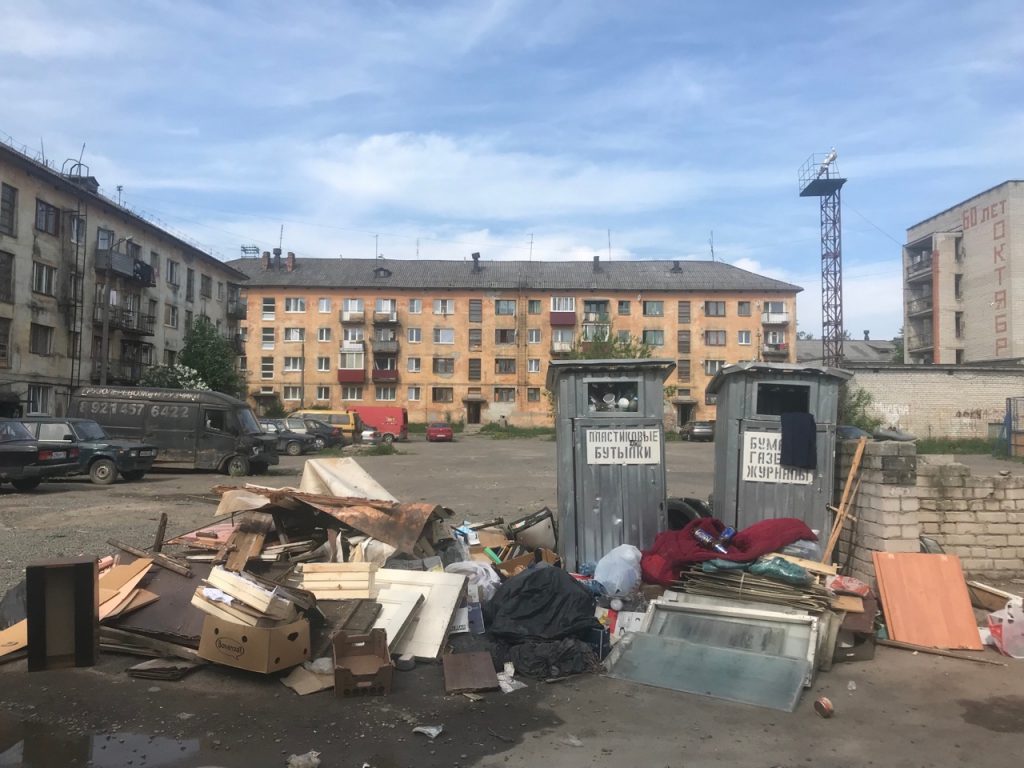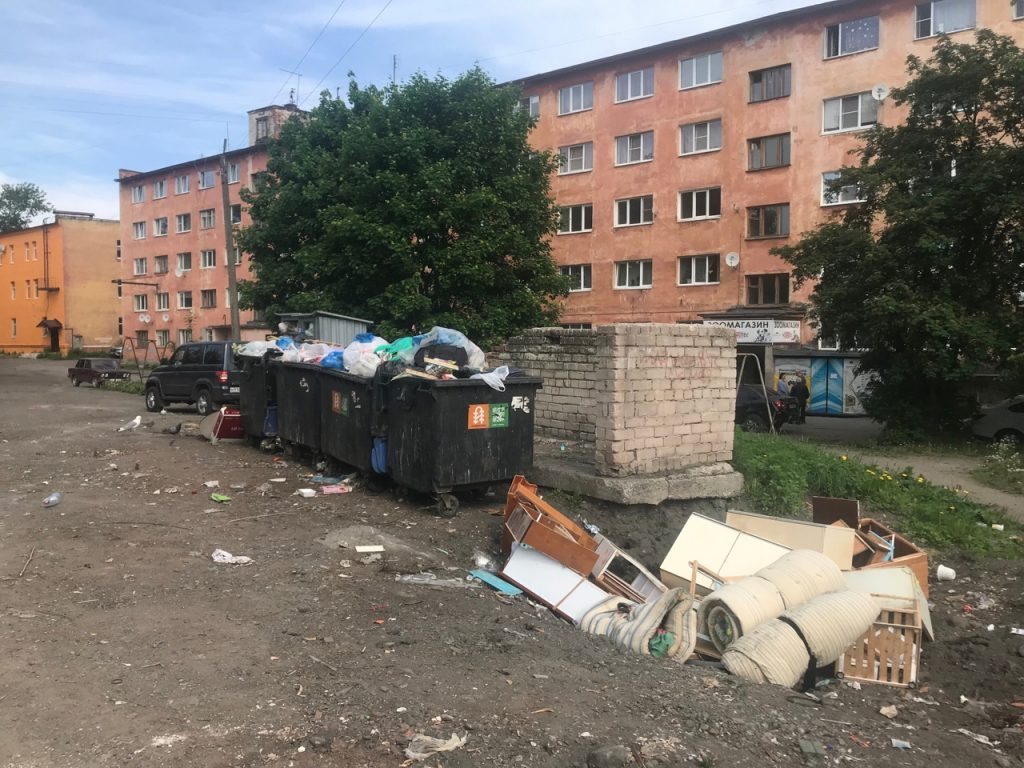 В Кондопожское ММП ЖКХ поступила жалоба на состояние контейнерной площадки у д. 21 по ул. М. Горького: “уже не первый месяц (с апреля) такая свалка, невозможно подойти к контейнерам для вторсырья, а находящийся рядом автосервис постоянной складирует сюда покрышки и прочий мусор.”