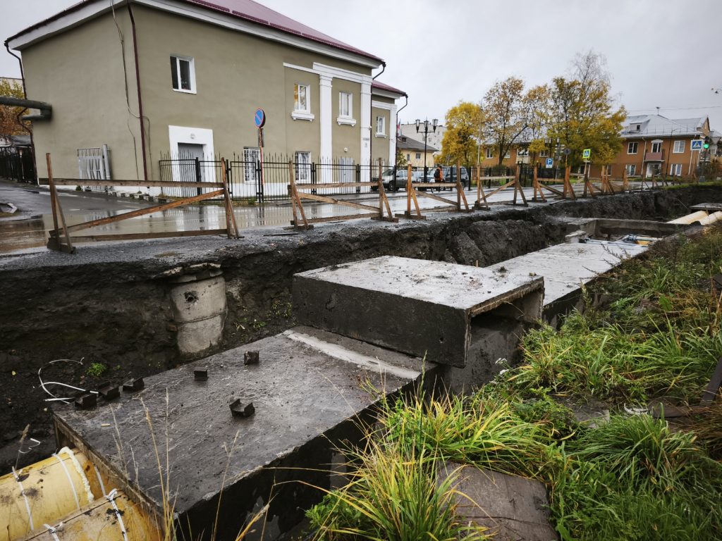На этой неделе начались активные работы по закрытию траншеи на участке у комбината. Здесь приступили к монтажу верхних защитных лотков и герметизации швов. Организован подвоз земли, часть траншеи уже засыпали.
