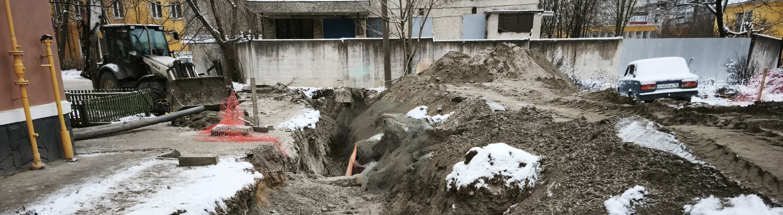 Уже проложена новая труба канализации диаметром 200 мм, которая проходит от входа в офис Теле-2 на ул. Пролетарской, идет вдоль фасада здания на пл. Мира, где находится вход в детскую библиотеку, и далее, вдоль бокового фасада за забор бывшего ГУСА.