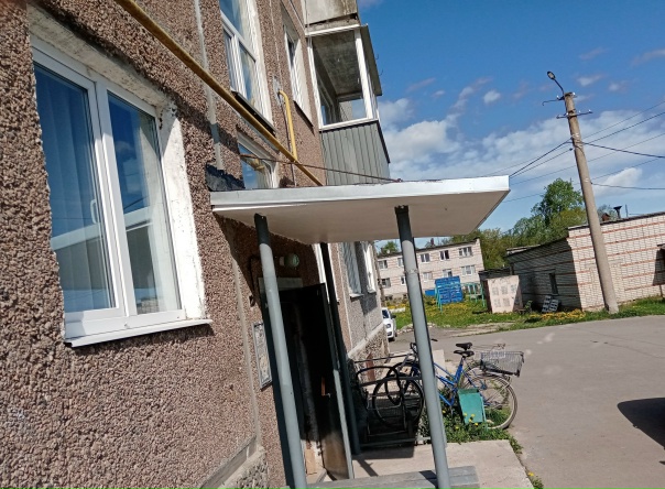 Приняты работы по выполнению первого этапа (ремонт козырьков подъездов) капитального ремонта фасада д. 58 по ул. Центральной в Янишполе.
