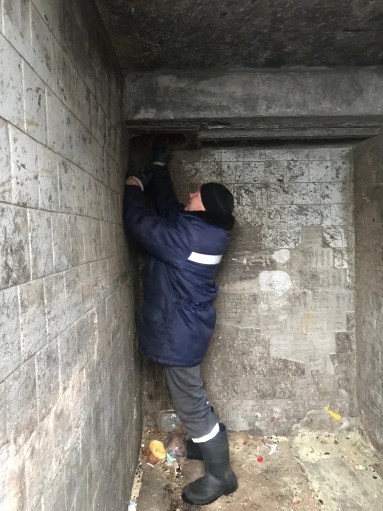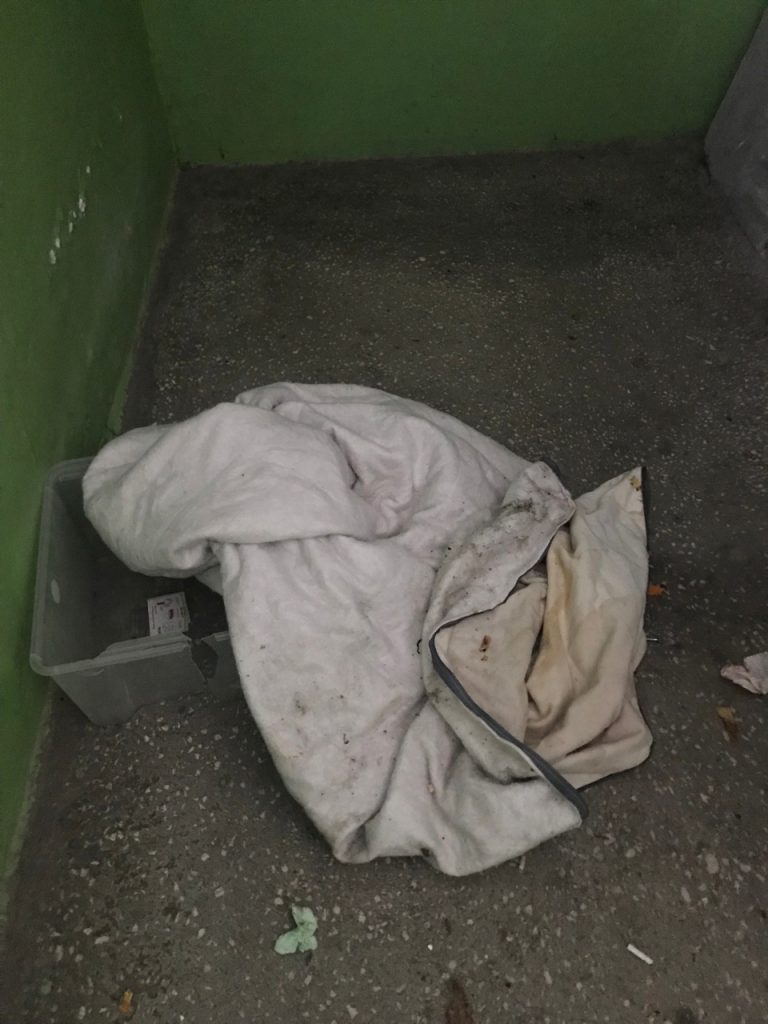 Такие люди не только приносят дополнительную работу коммунальным службам, но и портят жизнь своим соседям – бытовой мусор, скопившийся над местом затора, сразу вызвал соответствующие “ароматы” на лестничных площадках. Еще хорошо, что наматрасник удалось зацепить багром и вытащить, не пришлось ломать кувалдами стену и ствол. А такое в этом подъезде уже было, судя по забетонированному участку стены.