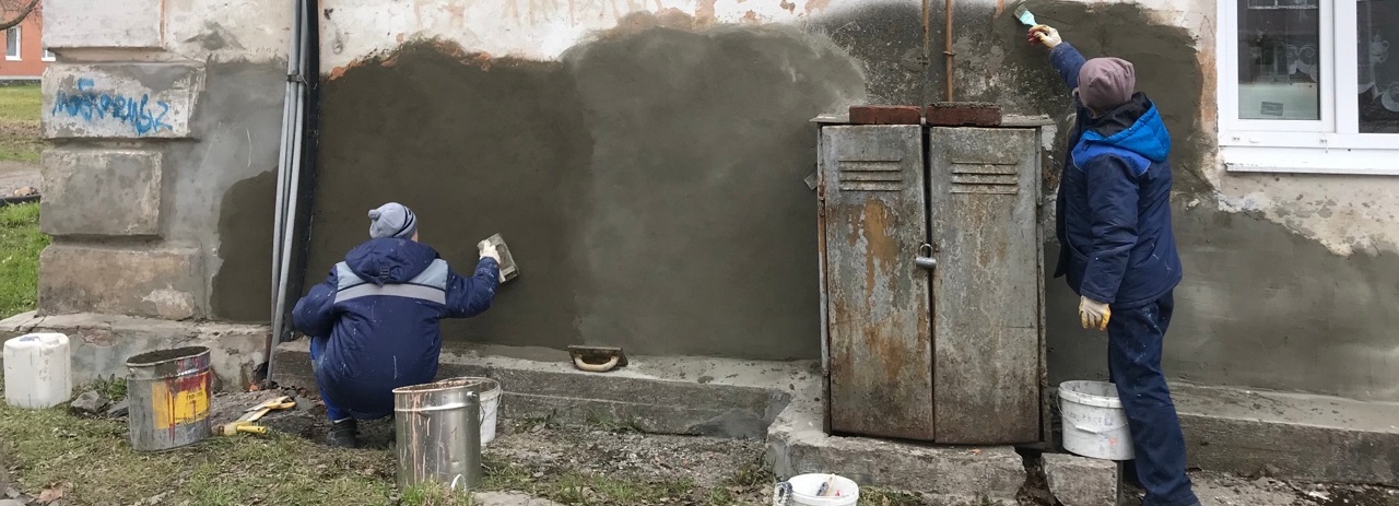 Отремонтированы полы в подъезде д. 24а по ул. Пролетарской. 13 мая в доме штукатурили фасад.