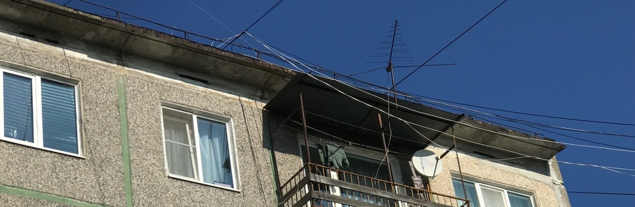 Перед предстоящими на этой неделе установкой отливов и заменой кровельного покрытия зачищены козырьки второго подъезда д. 9 по пр. Калинина,