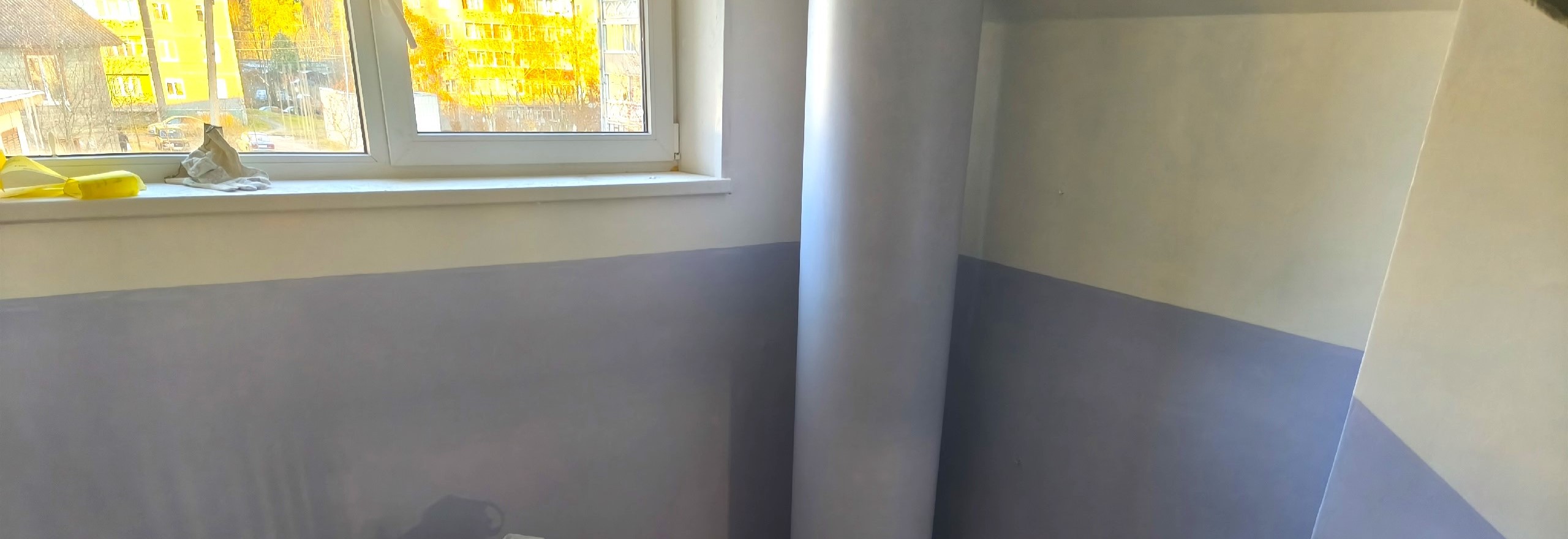завершается косметический ремонт в первом подъезде (до почтовых ящиков). Здесь уже побелены потолки и завершается окраска стен, колер согласован с жителями дома.