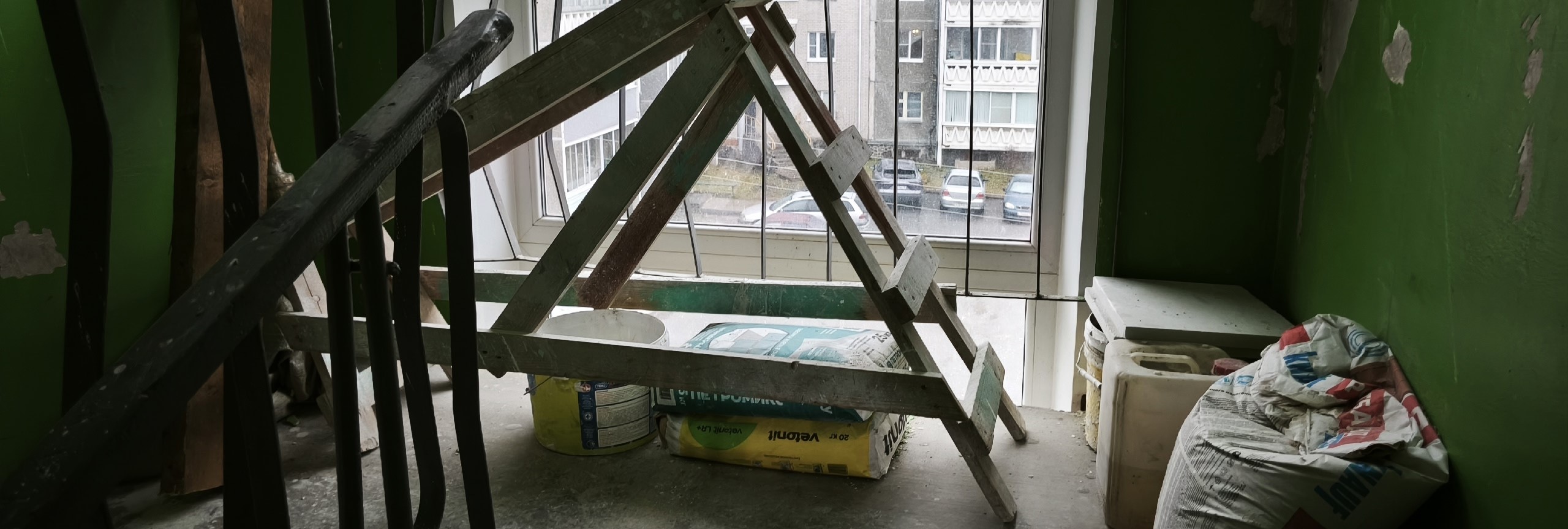 Началась подготовка к косметическому ремонту второго подъезда д. 26 по ул. Шежемского, куда завезены материалы для изготовления козлов и лесов на верхней площадке, необходимых для проведения штукатурных и малярных работ.