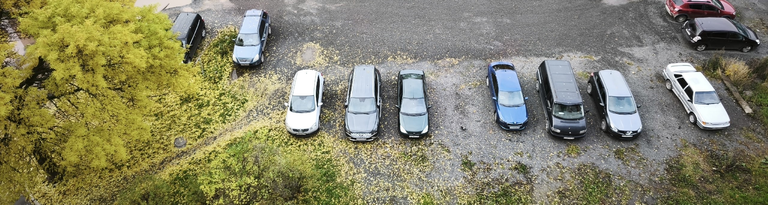 Далее трасса пойдет вдоль этого дома. Сначала через автостоянку и зеленую зону, не затрагивая заасфальтированного дворового проезда.