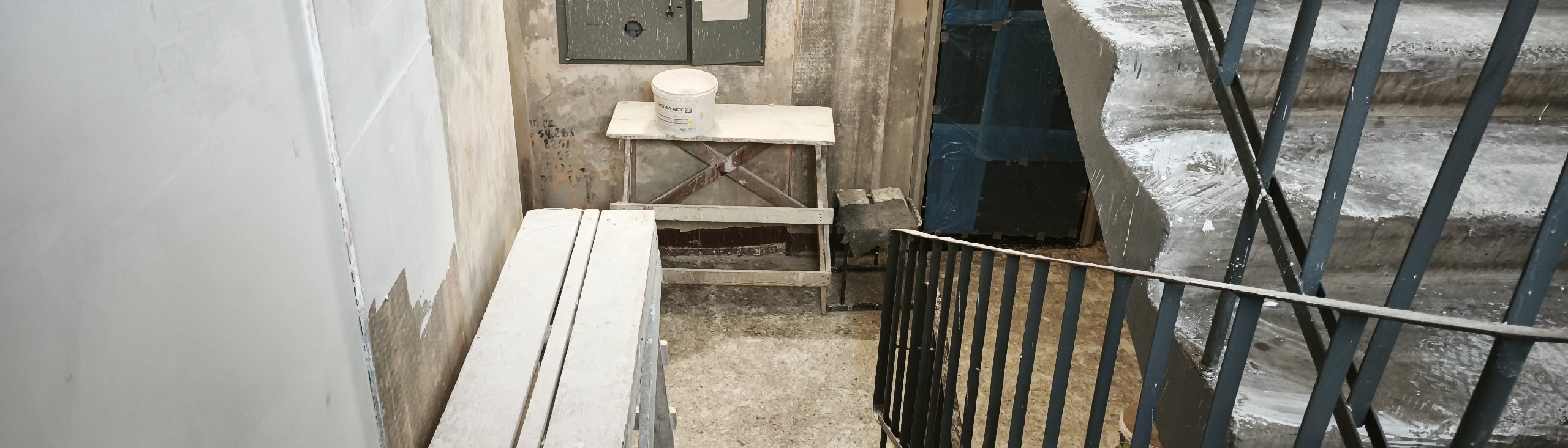 В первом подъезде начали подготовку к окраске стен, которую проведут до почтовых ящиков.