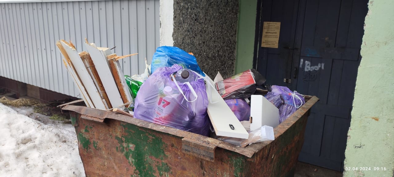 Сегодня в мусорном контейнере у третьего подъезда д. 9 по ул. Строительной были обнаружены строительные отходы от текущего ремонта (на снимке), которые складировать в контейнеры, предназначенные для ТКО (твердых коммунальных отходов), ЗАПРЕЩЕНО. Их необходимо выносить на контейнерную площадку, предназначенную для накопления КГО (крупногабаритных отходов), откуда региональный оператор их вывозит по отдельному графику.