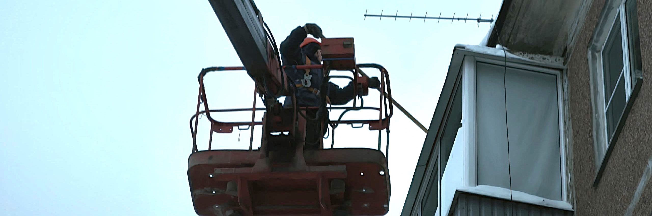 В этом году зима выдалась снежной, поэтому работники ЖЭУ ежедневно чистят от снега плоские крыши, наледь и сосульки убирают с скатных кровель с помощью автовышки. В первую очередь чистят самые опасные места — со стороны подъездов и проходов.